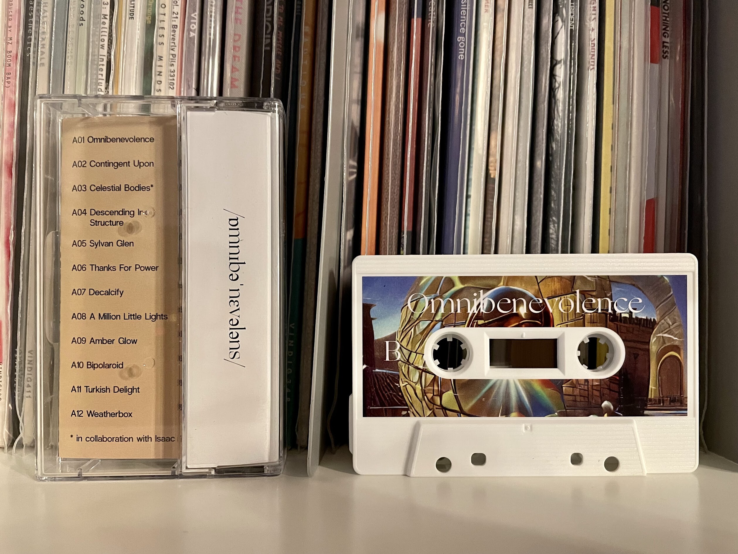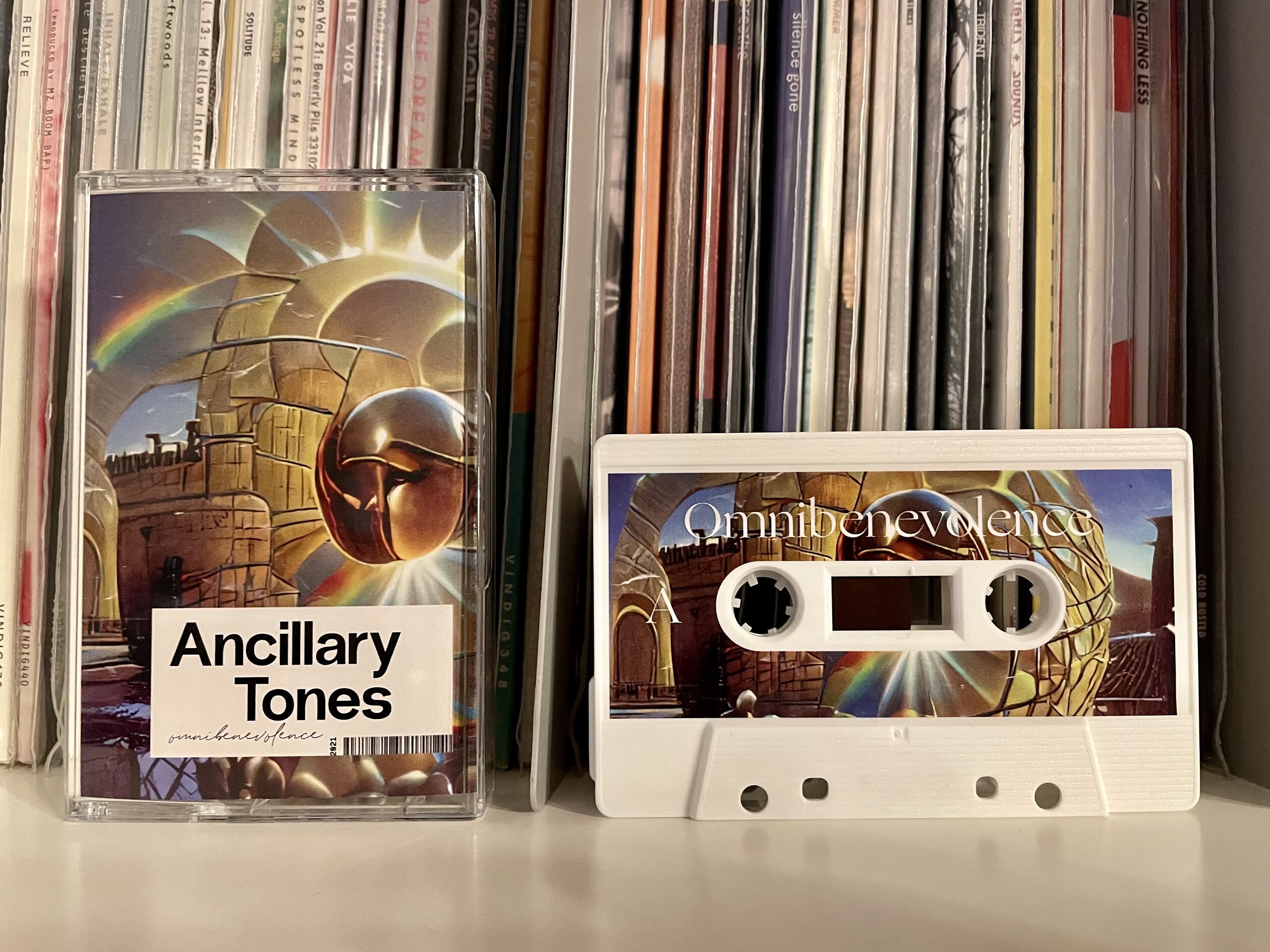 Das Tape „Ancillary Tones – Omnibenevolence“, dass über beatsupply erschienen ist, entführt uns in den experimentellen Bereich der Instrumental-Musik. Beachtliche 24 Tracks, die ich zwischen Ambient und Lofi ansiedeln würde, hat der US Beatschmied für sein aktuelles Album produziert. Total entspannte Kassette, die ihr euch direkt beim Label zulegen könnt.