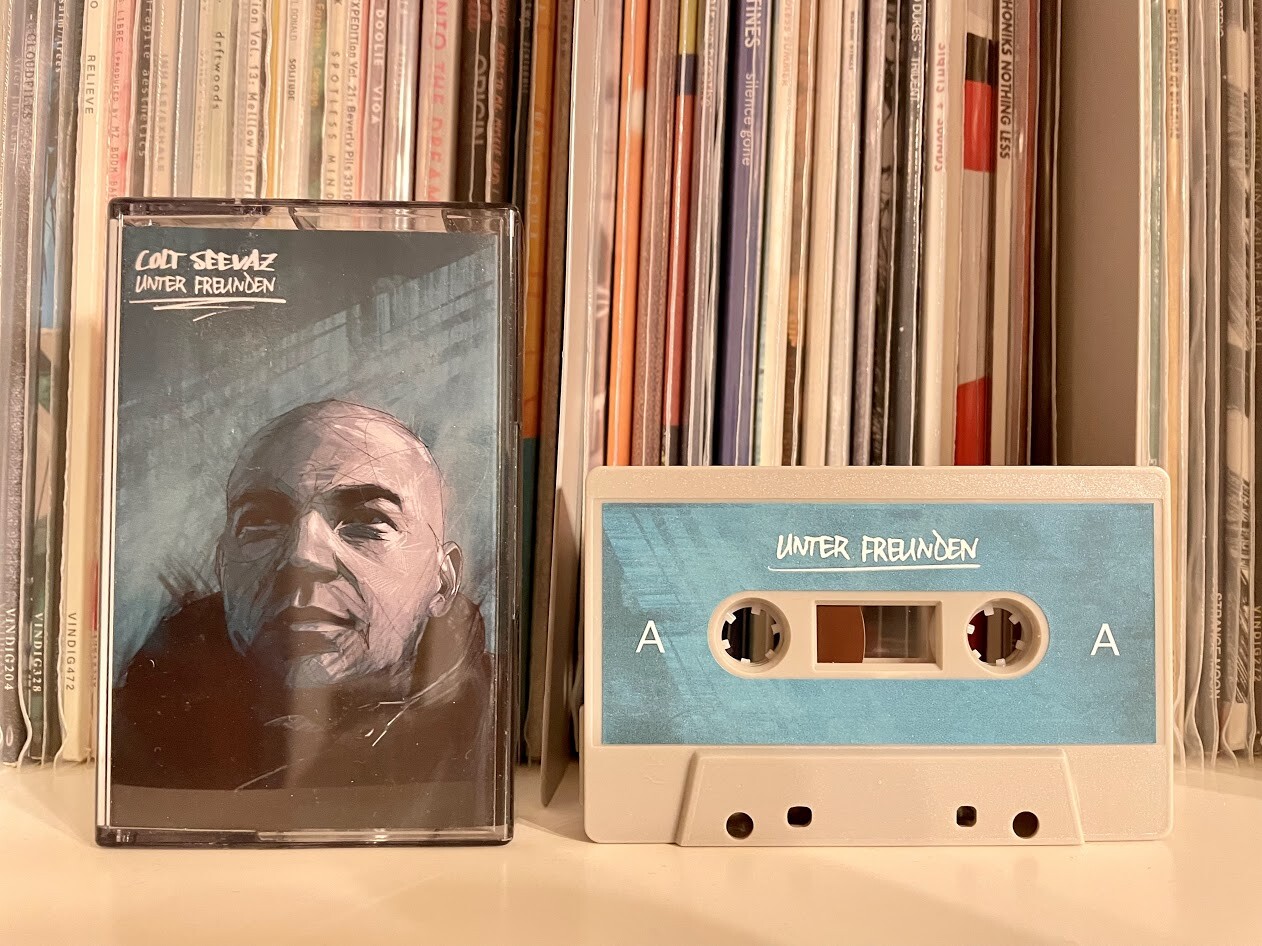 Im Juli 2021 ist über das berühmte LabOhr die „Unter Freunde EP“ von Colt Seevaz erschienen. Mit seinen Kollegen Rocksdaddy, Joeseph Hill und Chainsaw Capone hat der Hagener Beatschmied und Rapper acht starke Tracks (inkl. Skit und Outro) produziert, die auf der A-Seite des kompakten Magnetbandes Platz gefunden haben. Die B-Seite beherbergt die Instrumentals und zwei Bonus Beats unseres heutigen Protagonisten. Voll korrektes Tape, dass ihr euch direkt bei Bandcamp bestellen könnt.