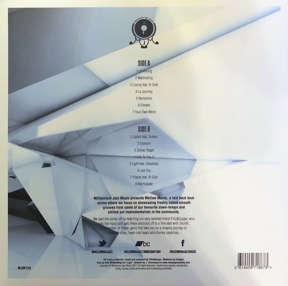 Nach On The Radar (OTR) und The Jazz Jousters startet das englische Label Millennium Jazz Music mit Mellow Mania eine weitere Instrumental Serie. Den Anfang macht das Album Flitz&Suppe – Mellow Mania #1 – Zeolith, von dem 200 Vinyl gepresst wurden. Bei Bandcamp kann man sich das Instrumental Hip Hop Album für schlanke 16 britische Pfund (zzgl. Porto und Versand) zulegen.