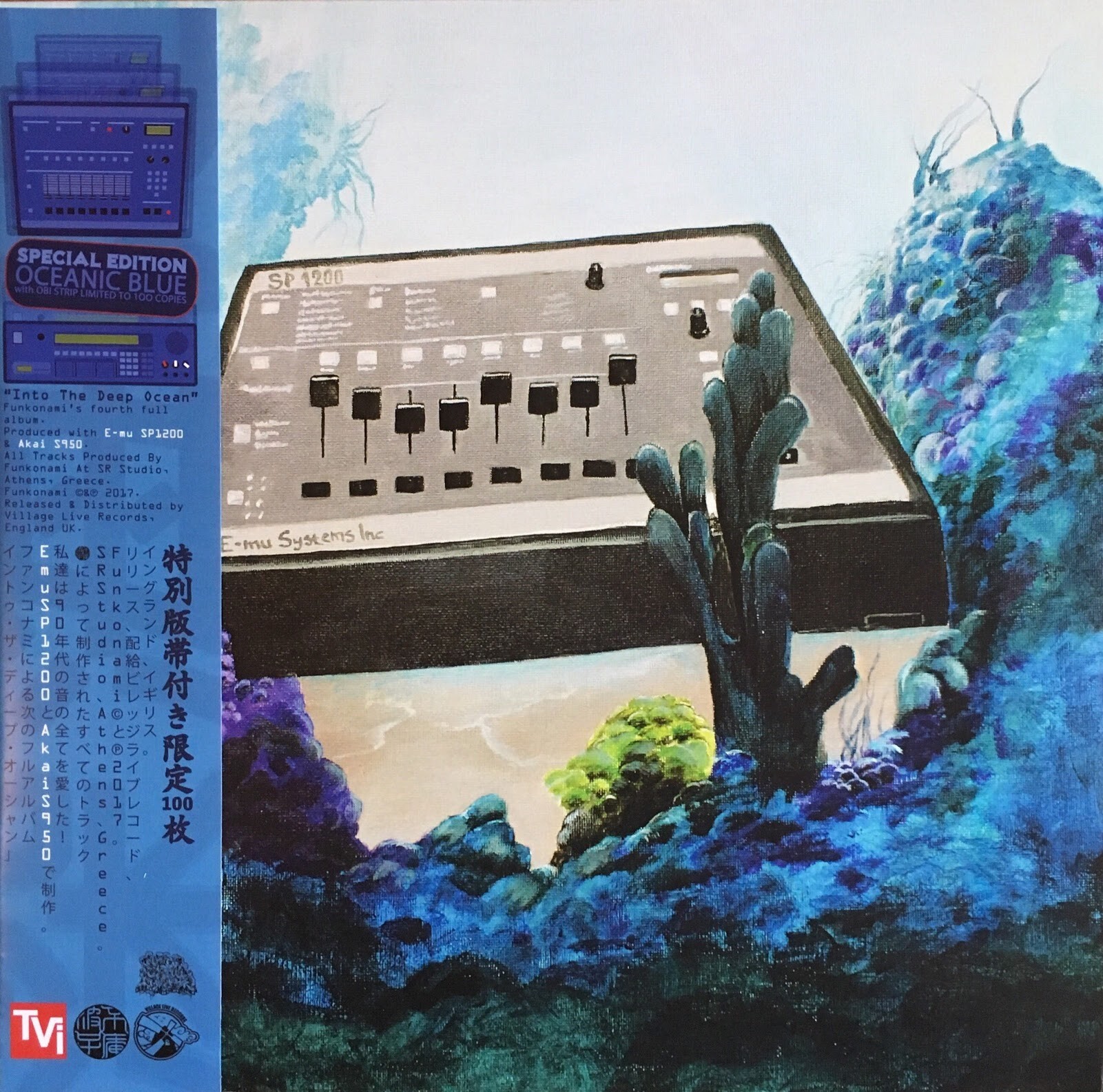 Nachdem ich Deep Into The Forrest (TVI005) voll verpasst habe, bin ich dieses mal auf Nummer sicher gegangen und habe in meinem Smartphone mehrere Erinnerungen hinterlegt. Was soll ich sagen, gute Strategie. Ich habe nicht nur einfach ein Vinyl erwischt, ich war einer der 100 ersten Besteller und habe Funkonami – Into The Deep Ocean (TVI012) als limited Ocean Blue record w. OBI strip erwischt. Yeah! Danach gab es noch 200 Platten aus schwarzem Kunststoff, über die ich mich wahrscheinlich genauso gefreut hätte. Beide Versionen sind erwartungsgemäss bereits ausverkauft. Ein paar Kassetten sind bei Village Live noch vorhanden.