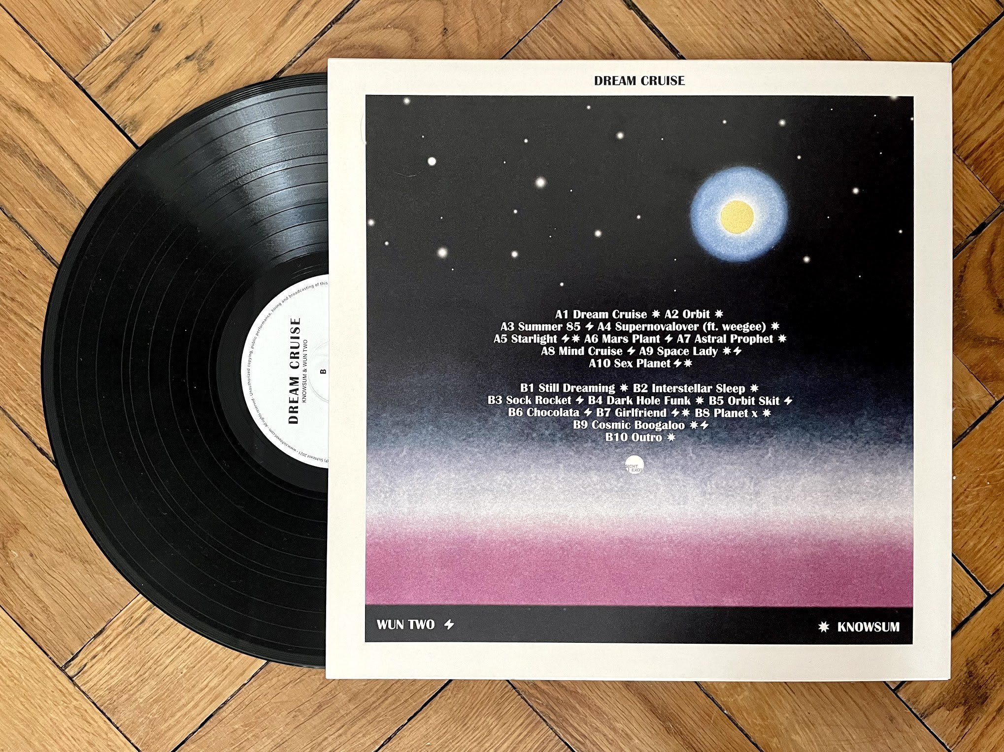 Über das in Mainz stationierte Record Label Sichtexot ist mal wieder eine Perle der instrumentalen Unterhaltungskunst erschienen: „Knowsum & Wun Two – Dream Cruise“. Das Beatschmied-Duo hat für das Vinyl satte 20 Tracks (inkl. Skits) produziert. Die Platte ist voller kosmischer Vibes gepaart mit sauber gebastelten Hip Hop Beats in Funk und waberndem Lofi. »Float with us.« Ok!