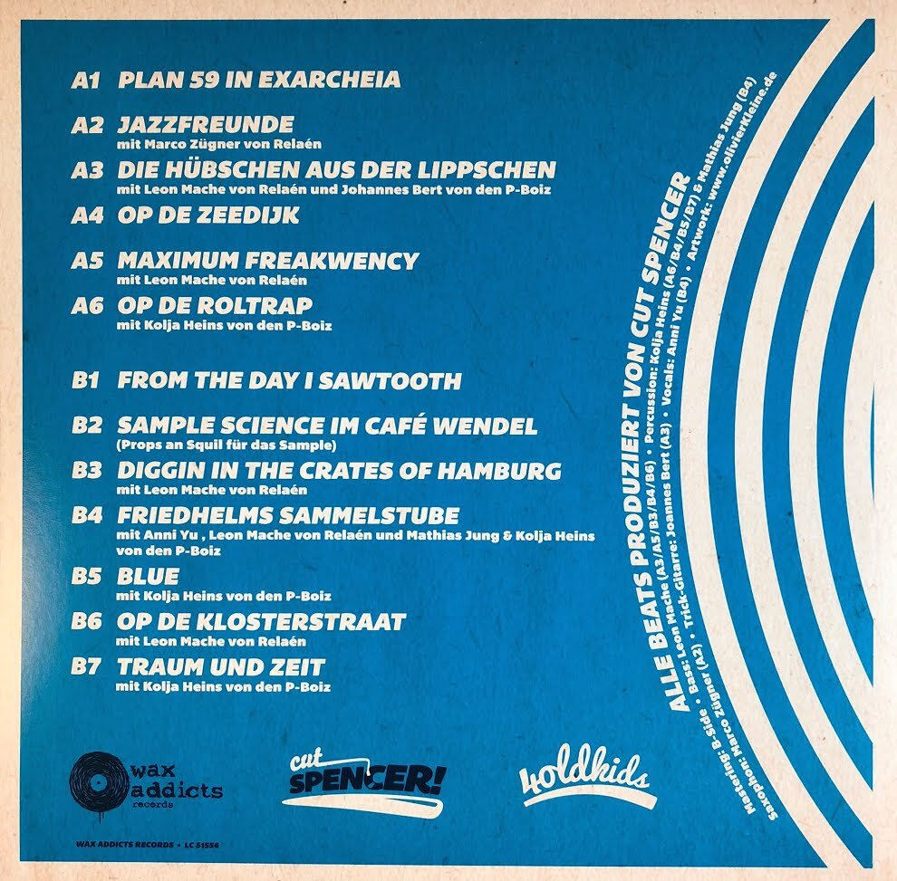 Meine Wertung: 9/10 für Cut Spencer – Instrumentals a gogo. Das instrumentale Album des Paderborner Vinyl-Debütanten, der diggen, samplen, beatsen, scratchen als Interessen bei Facebook angibt, ist ganz grosses Klangkino. „Französische Harfen-Klänge treffen auf brasilianischen Jazz, treffen auf belgische Bahnhofsansagen, treffen auf Hamburger Digger-Fachsimpelein, treffen auf Berliner Sample-Science.“ (Zitat von Tim Tschentscher) Eine treffendere Inhaltsangabe kann ich jetzt nicht mehr basteln. Danke dafür! Das von B-Side gemasterte Album besticht durch jazzige Beats und Samples. Cut Spencer und seine musikalischen Gäste haben 13 Tracks eingespielt, die es sofort auf meine Favoritenliste geschafft haben. Wer auf jazzigen instrumentalen Hip Hop steht, der sollte unbedingt zuschlagen. Absolute Empfehlung!
