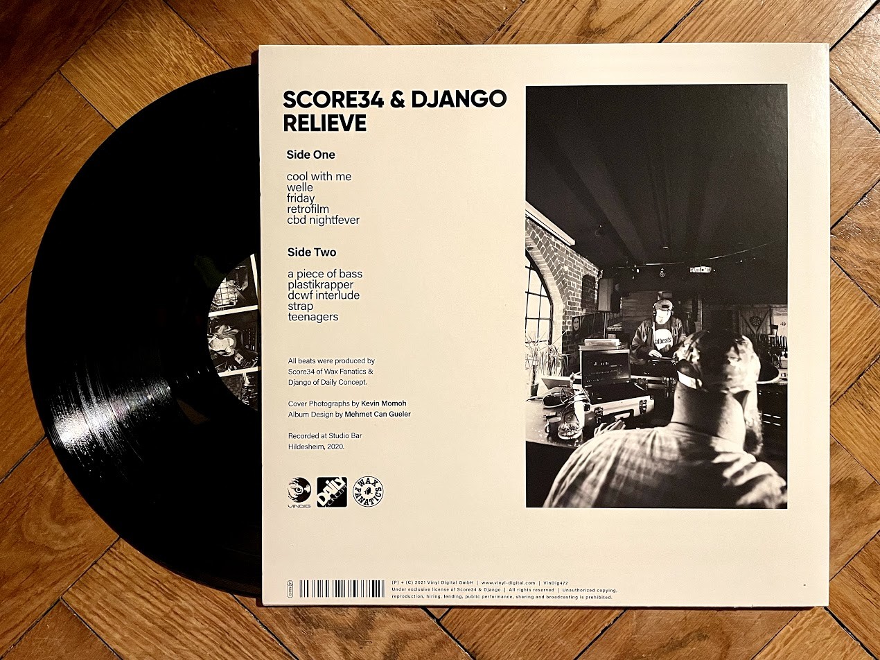 Meine Wertung: 9/10. Favoriten: „welle“, „a piece of bass“ und „strap“. Das Vinyl „Score34 & Django – Relieve“ könnt ihr euch direkt im Online Shop von VinDig zulegen. Lohnt sich!