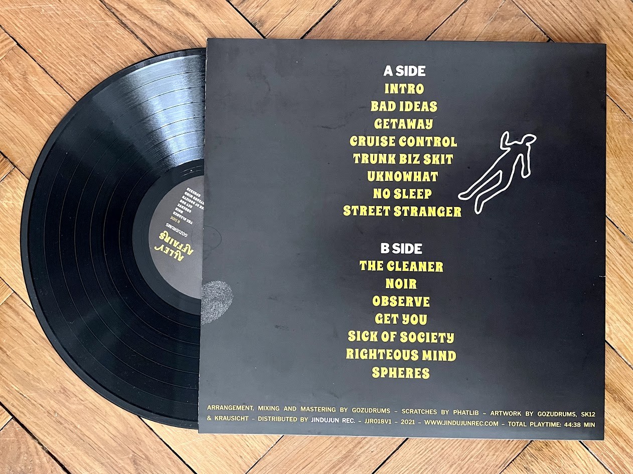 ist natürlich eine bekannte Größe. Es sind schon etliche Tapes im Vinyl-41-HQ gelandet. Aber Gozudrums und dann auch noch Gozudrums auf Vinyl? Das schaut nach einem doppelten Debüt aus. Na dann! „Alley Affairs“ wurde am 9. September 2021 (JJR018V1) veröffentlicht und hat sich sofort in meine persönliche Top 10 katapultiert.