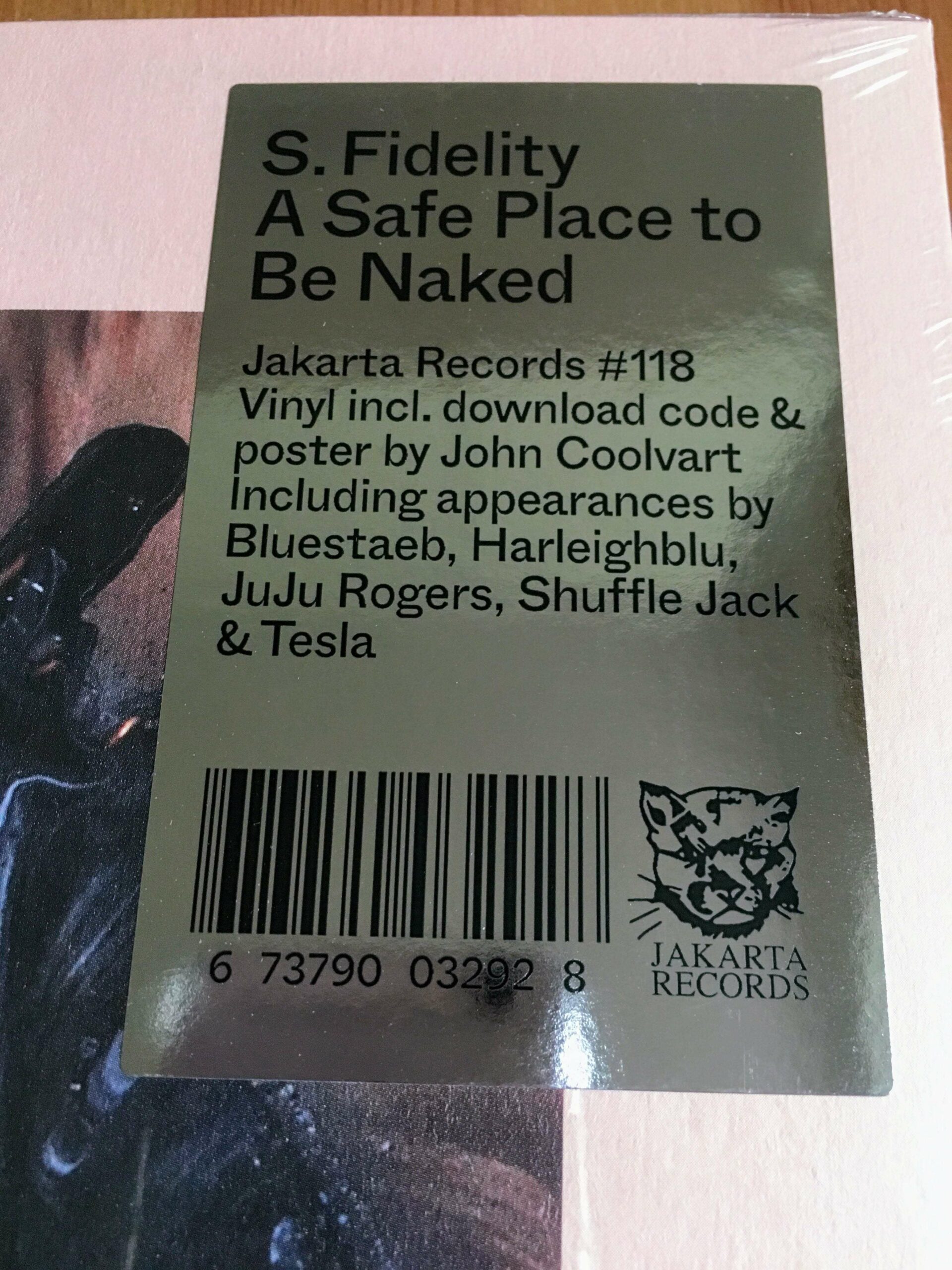 Mit „S. Fidelity – A Safe Place to Be Naked“ liegt endlich mal wieder ein neues Vinyl aus dem Hause Jakarta Records (JAKARTA118) auf meinem heimischen Plattenteller. Für die Produktion seines Debüt Albums hat der gebürtige Schweizer tatkräftige Unterstützung von Juju Rogers, Bluestaeb, Shuffle Jack, Tesla und Harleighblu in seinem Berliner Studio versammelt. Das Mastering wurde von Mark Pfurtscheller in seinem Chin Chat Studio erledigt. Der Platte liegt ein Poster im A2 Format und ein Download-Code für Bandcamp bei. Für das Artwork und die Collagen ist der gebürtige Armenier John Coolvart verantwortlich.