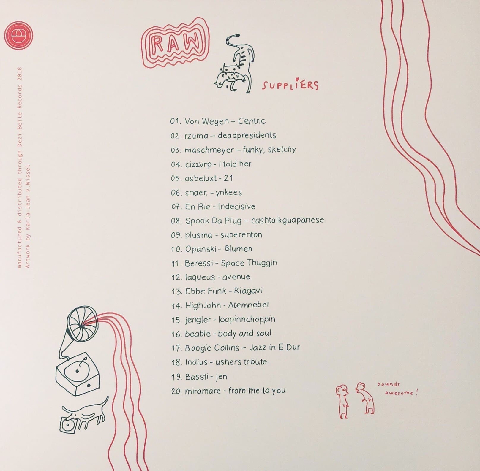 Da ist es endlich, dass erste Release von Dezi-Belle im Jahr 2018: raw suppliers – beat collective. Nach Produktionsschwierigkeiten im Presswerk wurde das Doppel-Vinyl mal eben von der Platte rzuma – Nighshift überholt. Finally! Jetzt liegen die beiden hübschen Stücke im „red/white marbled“ Design in meinem Plattenregal und werden abwechselnd durchgehört. Von der colored Variante wurden 100 Kopien gepresst, die mittlerweile ausverkauft sind. Die Black Vinyl Edition ist bei Bandcamp noch verfügbar. Zuschlagen! Lohnt sich.